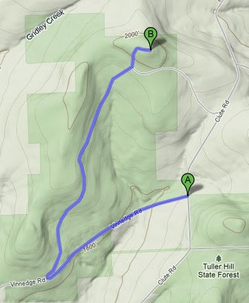 Unlike the convoluted routes I have been putting together for my recent long trail runs, this run was pretty straightforward: an out-and-back on the Tuller Hill section of the Finger Lakes Trail.